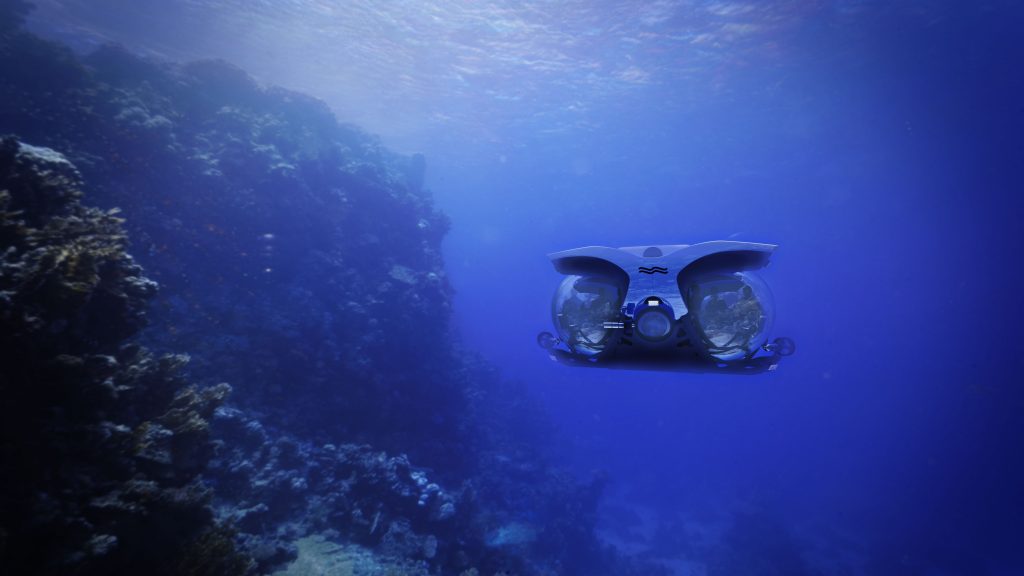 The Cruise Sub 7 – 1140 is a deepsea exploration submarine with a unique design. Two large acrylic spheres on each side give this submersible a remarkably luxurious and spacious interior.
