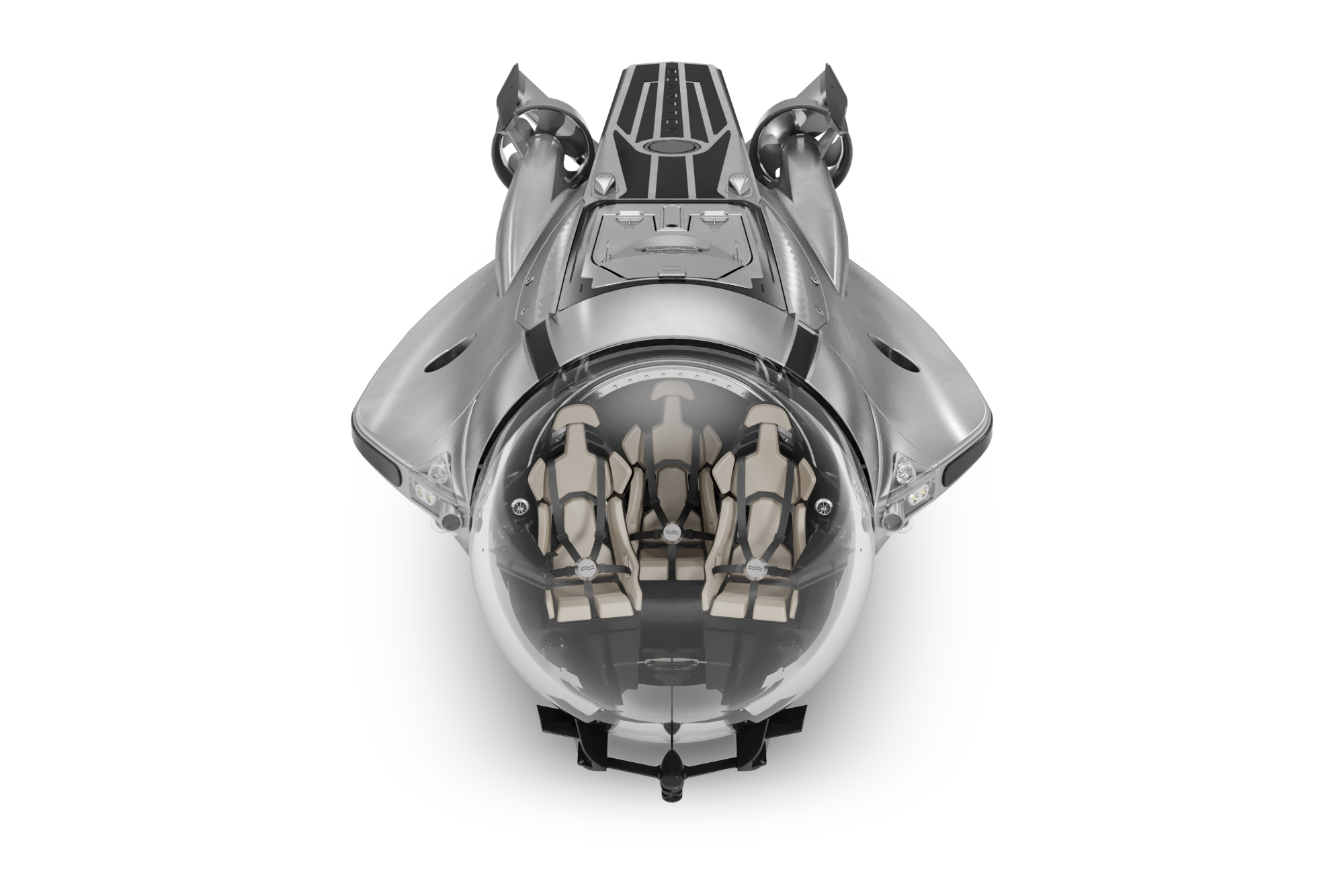 The Super Sub has the best-in class propulsion system with four powerful thrusters delivering 60 kW of thrust. When combined with the rudders, it allows for steep 30-degree climbs and dives. The result is the smoothest and most exhilarating underwater experience, all while maintaining a 360-degree view.