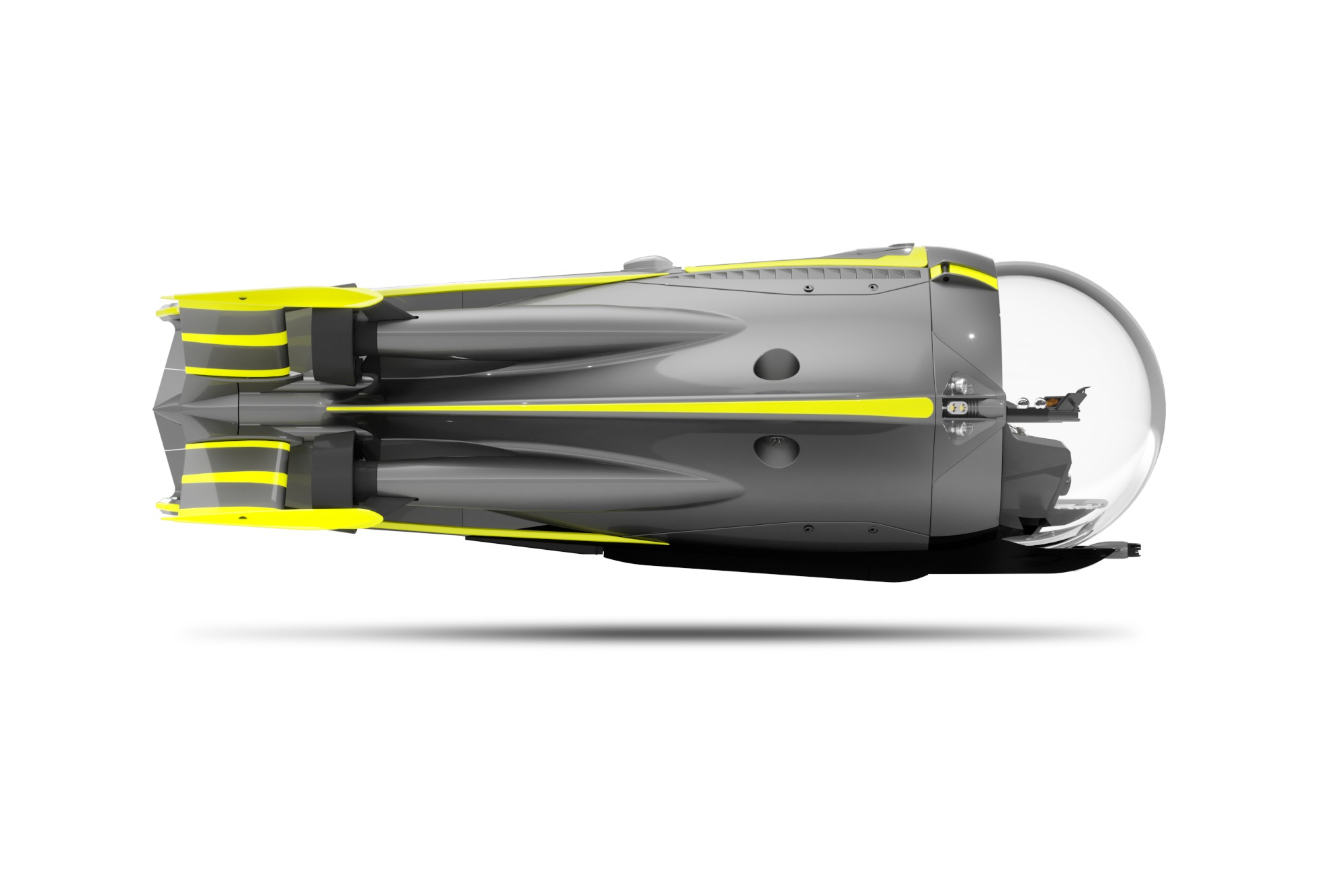 The ultra-luxury three-person submersible, which has a depth rating of 300 meters, is now the most flow-dynamic submersible the world has ever seen. Together with MARIN, the renowned Dutch maritime research institute specialising in computational flow dynamics, the top speed of the Super Sub was optimised from its initial 8-knot estimation up to as much as 10 knots. That is 3-4 knots faster than the top cruising speed of a bottlenose dolphin, and 7 knots faster than the average submersible.